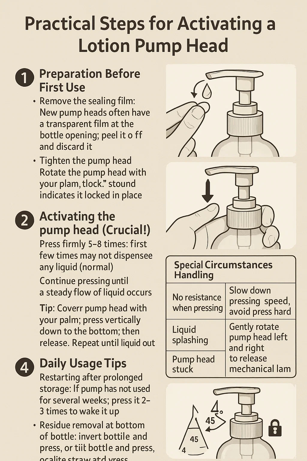 Praktiska steg för att aktivera en lotion Pumphuvud
