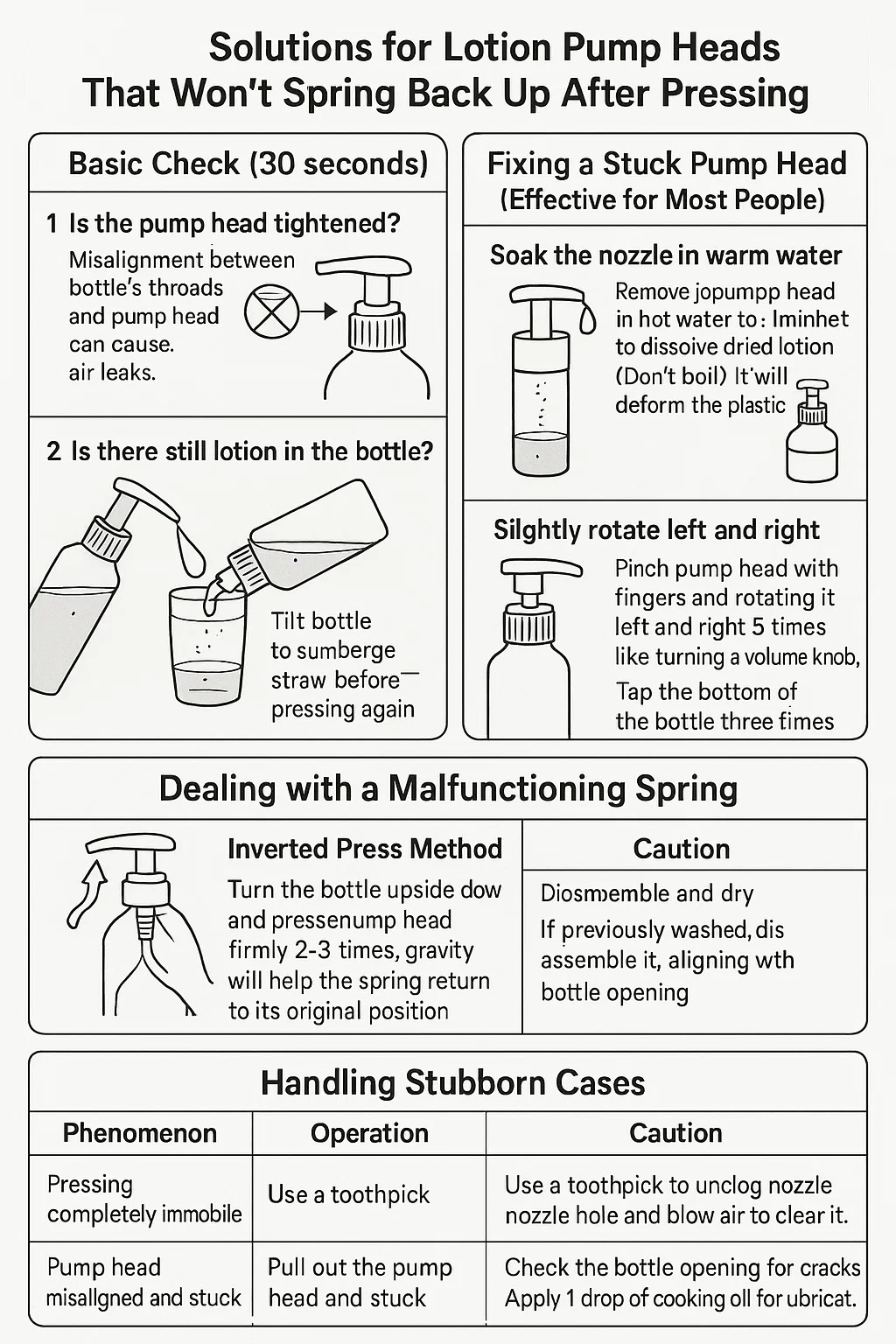 Lösningar för Lotion pumphuvuden Som inte kommer tillbaka efter att ha tryckt:
