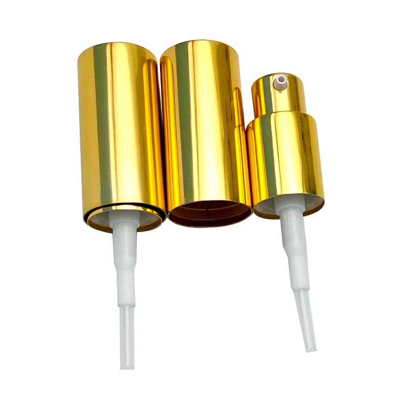 En annan unik fördel är dess utsökta utseendedesign. Utformningen av den 18 mm lotionpumpen är enkel och elegant, med släta linjer, som kan matcha varumärkesbilden av avancerade hudvårdsprodukter. Samtidigt tillhandahåller vi också en mängd olika ytbehandlingsmetoder, såsom kromplätering, guldplätering etc. för att göra lotionpumpen mer bländande och förbättra produktens kvalitet.